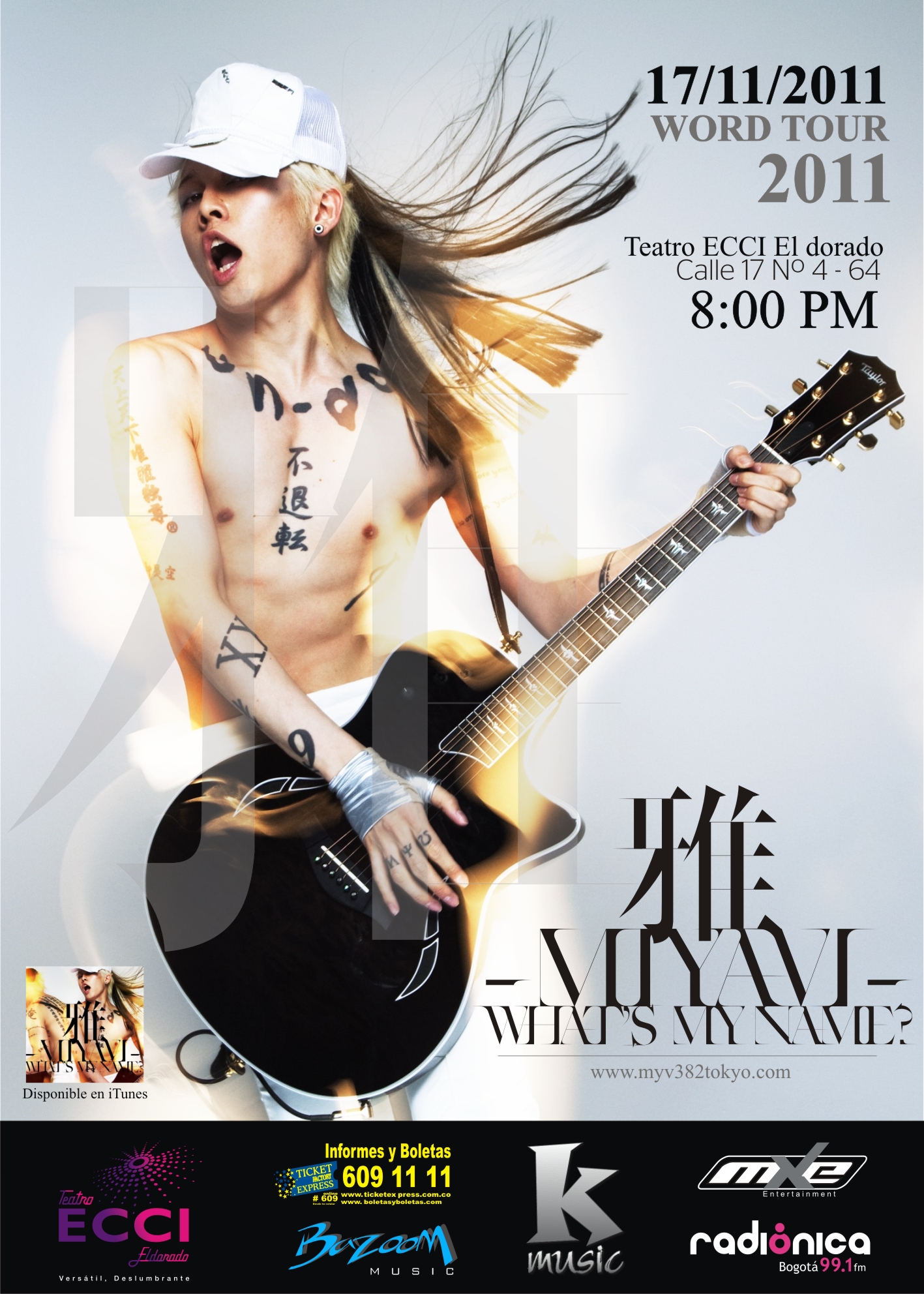 El virtuoso excentrico músico y productor japones Takamasa Ishihara conocido como Miyavi confirmo concierto en Colombia el próximo 17 de Noviembre en el Teatro ECCI El Dorado de Bogota.