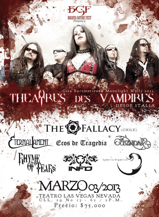 Boletas concierto APLAZADO Theatres des Vampires en Colombia 2013, Mar 3 Lugar a confirmar en Bogota
