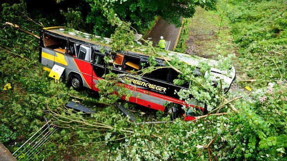 Unido su bus de gira se vio involucrado en un accidente sobre el cruce de Brassknocker Hill, el autobús cayo cerca de 30 pies sobre un viaducto,