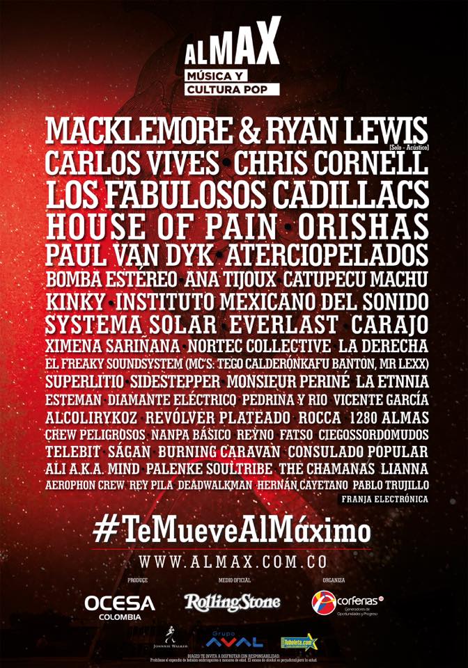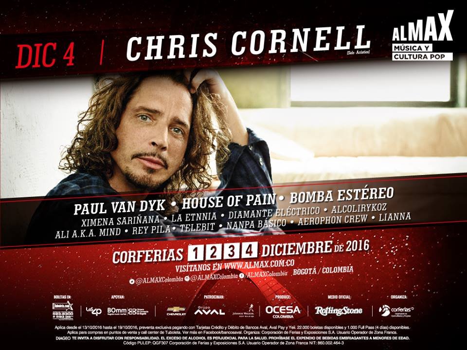El evento liderado por el vocalista CHRIS CORNELL (mas conocido por ser el lider de Soundgarden) contara con bandas como HOUSE OF PAIN, LOS FABULOSOS CADILLACS, ATERCIOPELADOS, etc…