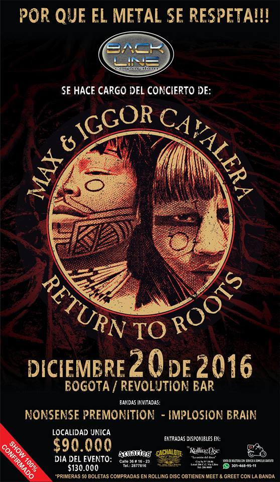 CONFIRMADO: MAX & IGGOR CAVALERA: Return to Roots en Colombia 2016