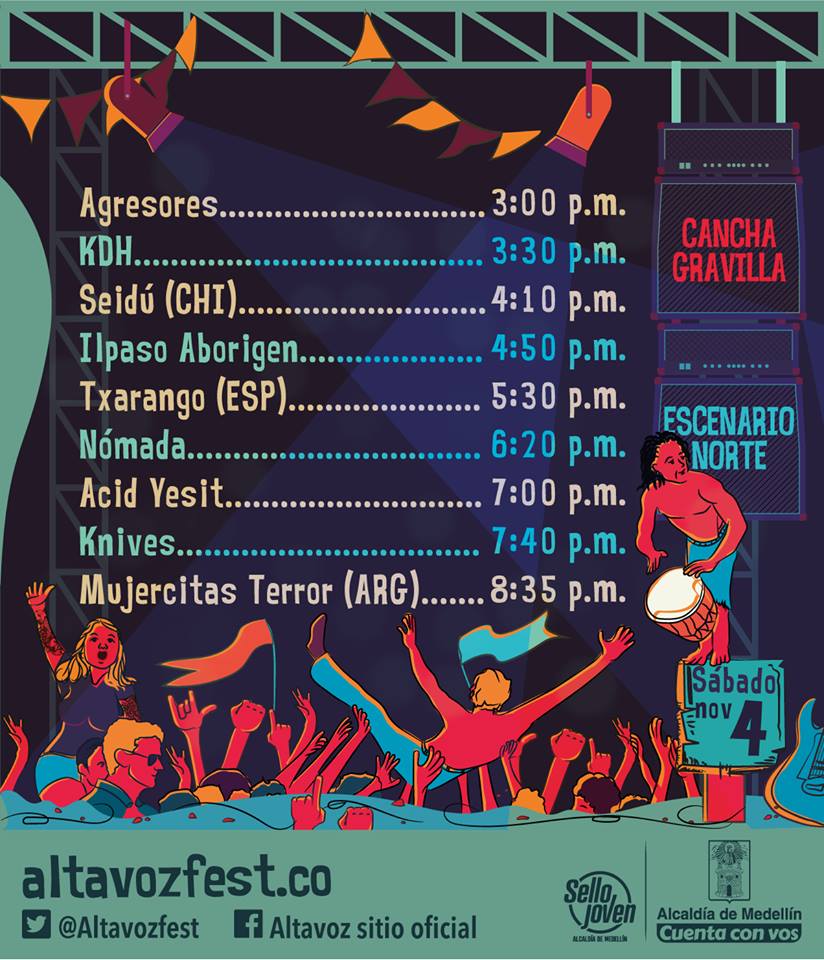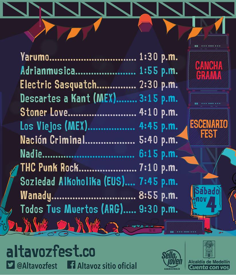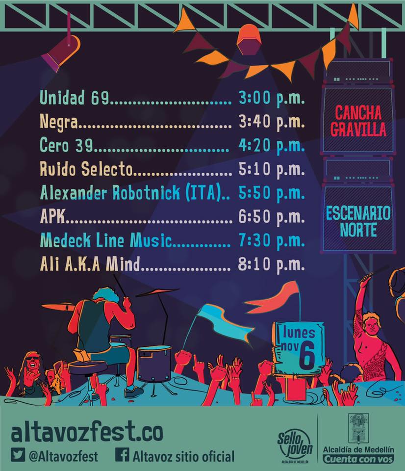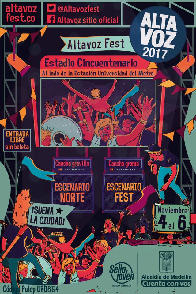 Finalmente se revela el cartel y la programación de bandas del festival ALTAVOZ 2017 de Medellín el cual se llevara a cabo el próximo 4, 5 y 6 de Noviembre en el Estadio Cincuentenario.