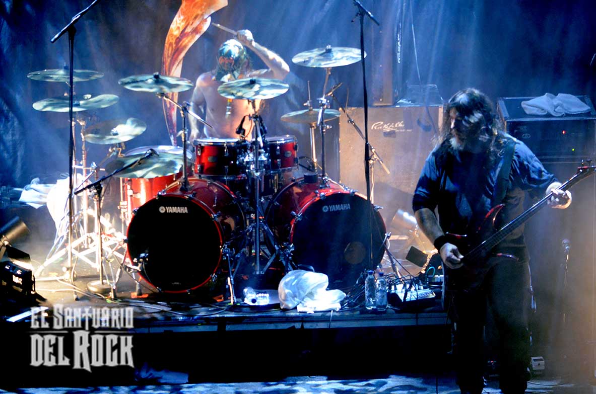 Mientras los sonidos elongados hacían vibrar la tarima de John Dee con, dos grandes cruces iluminadas adornaban el régimen negro que continuaba en la ventana artística principal de la sala de conciertos Rockefeller. En esta ocasión, alias Heljarmadr, Ahriman, Jalooma y Chaq protagonizaron una descarga ininterrumpida de lobreguez tenebrario.