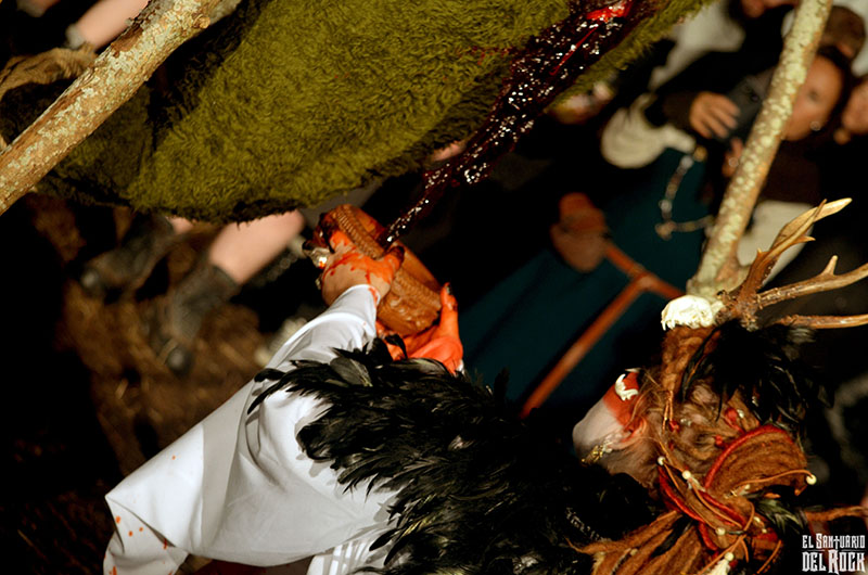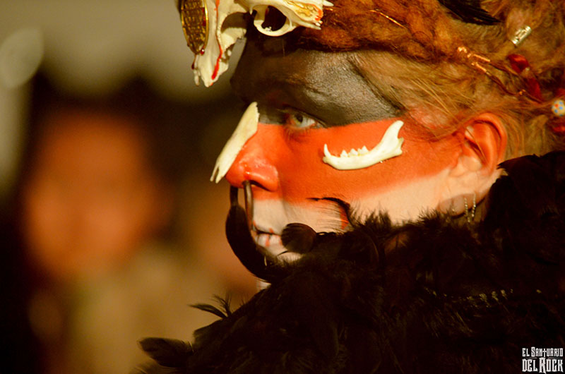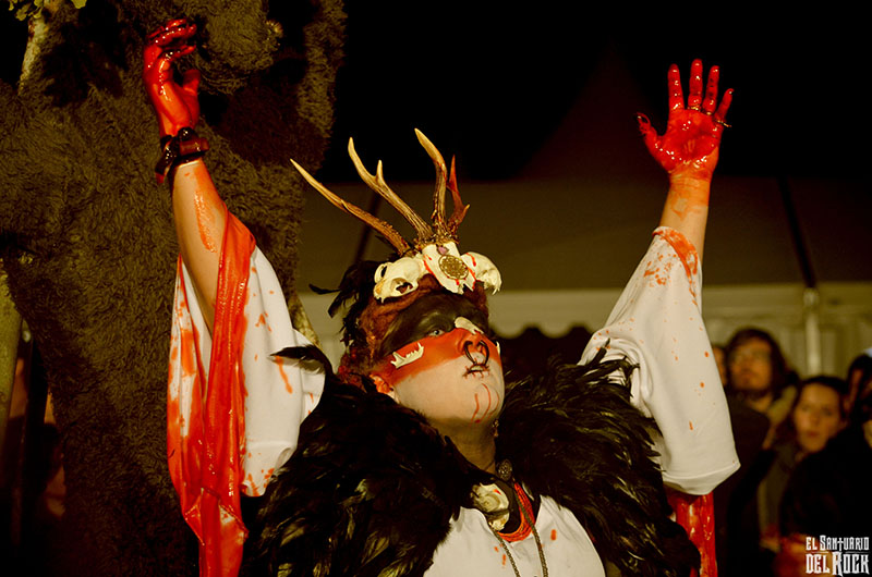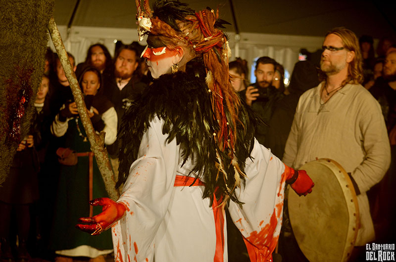Nytt Land de Rusia proyectó su oscuridad shamánica en especial con las diversas técnicas vocales ancestrales de la figura central femenina. Intercalando el estilo de canto Xöömei de Tuvá con secuencias de dulces melodías de contraste impecable y chillidos desgarradores, la pareja de Natasha y Anatoly inició esta entrega de misticismo a través del cálido viento de verano de la tarima auxiliar, Kaupangr. ‘Völuspá’ ostenta una percusión de marcha solemne que incita al trance de imaginar una comarca como la que se muestra en películas como El Señor de los Anillos o Corazón Valiente. Entre su repertorio no pudo faltar por supuesto un corte que se llame ‘Ragnarök’ y que le cante al fin del mundo. Lo interesante de esta agrupación es que intenta mantener el toque original de su inspiración en sagas antiguas escritas en islandés y la mayoría de sus títulos hacen uso de alfabeto nórdico antiguo.