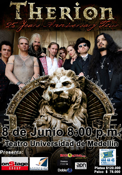 [fb_wpress_connect image_url=”http://www.elsantuariodelrock.com/blog/wp-content/plugins/facebook_wpress/include/graph/facebook-connect-post.png”]La banda de Metal Sinfónico Therion de regreso en Colombia 2012 para presentar su nueva gira, “25 Years Anniversary Tour”, con dos exclusivos shows el próximo 7 y 8 de Junio en el Teatro Royal Center de Bogota y Teatro de la Universidad de Medellín respectivamente.