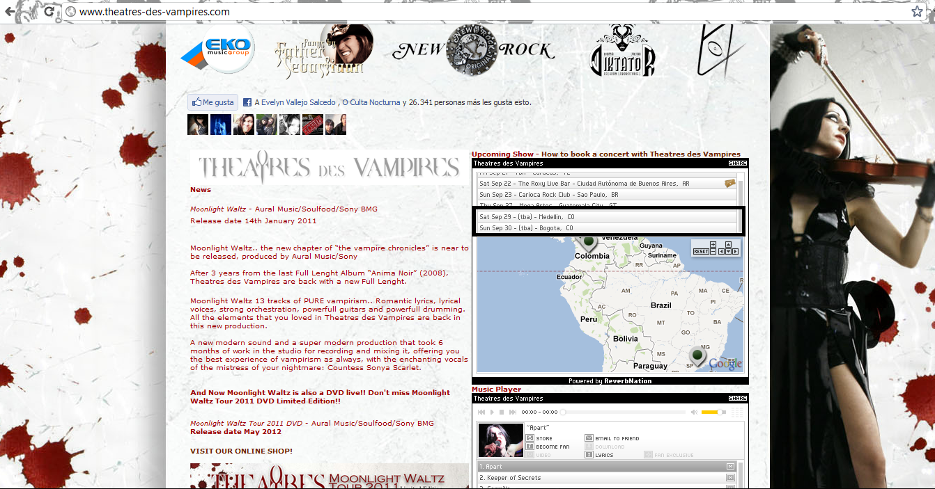 THEATRE DES VAMPIRES, la banda liderada por Sonya Scarlet finalmente regresa a Latinoamerica el proximo mes de septiembre incluyendo dos fechas en Colombia, la primera en Medellin y la segunda en Bogota.
