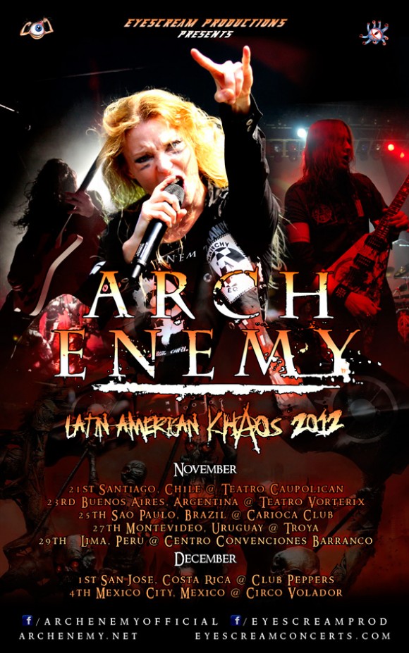 ARCH ENEMY confirman finalmente las fechas de lo que sera su gira por Latinoamérica “Latin American Khaos 2012 Tour” programada para la segunda mitad de noviembre y principios de diciembre 2012.