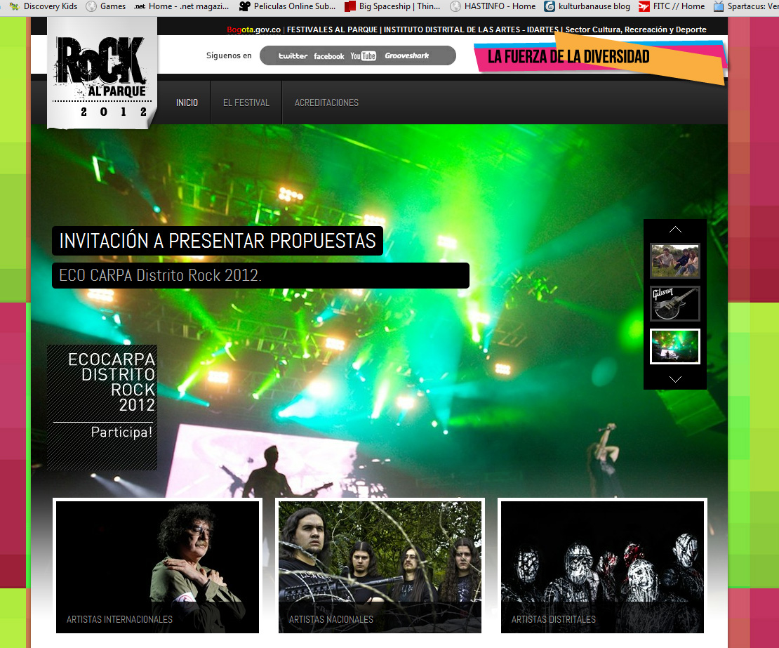 [fb_wpress_connect image_url=”http://www.elsantuariodelrock.com/blog/wp-content/plugins/facebook_wpress/include/graph/facebook-connect-post.png”]Este año Rock al Parque es la Fuerza de la Diversidad. Una apuesta para que la vitrina de la música independiente y alternativa más importante del país pueda proyectarse al siglo XXI con las puertas abiertas, reencontrando el legado de las grandes bandas e incluyendo los colores y sonidos de las nuevas propuestas. Este año el festival se llevará a cabo el 30 junio, 1 y 2 de julio. El cierre está a cargo, por el momento, del argentino Charly García.