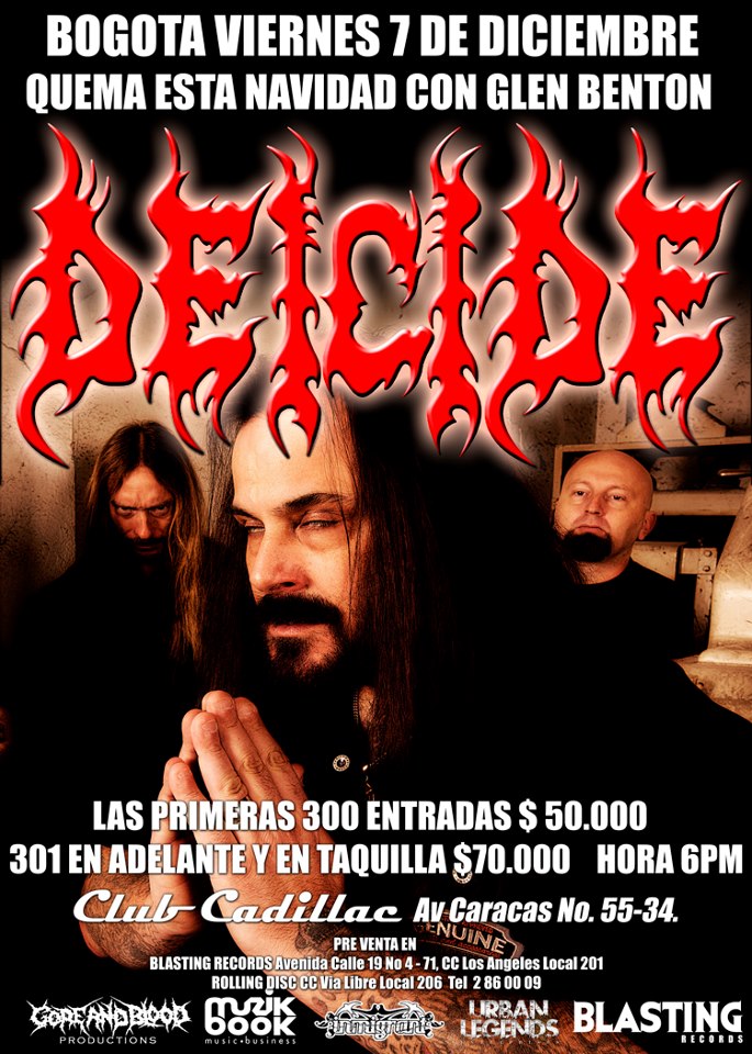 Blasting Records confirma el regreso de DEICIDE a Colombia para el proximo 7 de diciembre al Club Cadillac de Bogota.