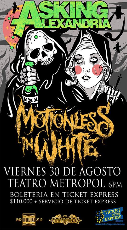 La agencia brasileña Liberation Music Company revela oficialmente la visita del quinteto ingles, ASKING ALEXANDRIA por territorio latinoamericano acompañados por los norteamericanos, MOTIONLESS IN WHITE para la segunda mitad de agosto, comienzos de septiembre.