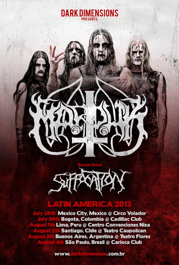 Los suecos de MARDUK confirman su tour en latinoamerica 2013 para el segundo semestre del año, el cuarteto sueco estara acompañado por los estadounidenses de Suffocation.