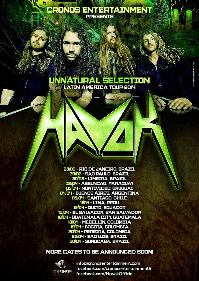 Luego de su exitosa visita a Rock Al Parque, el cuarteto de Thrash Metal norteamericano, HAVOK confirma su regreso por territorio sudamericano incluyendo a Colombia para finales de marzo, principios de abril 2014.