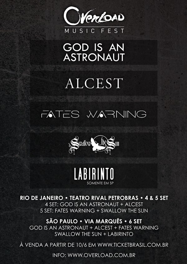 Se confirma la visita por primera vez a Sudamerica de los franceses ALCEST acompañados por GOD IS AN AUSTRONAUT, SWALLOW THE SUN y FATES WARNING bajo el festival OVERLOAD MUSIC FEST.