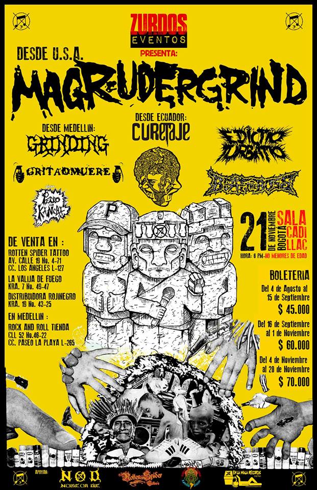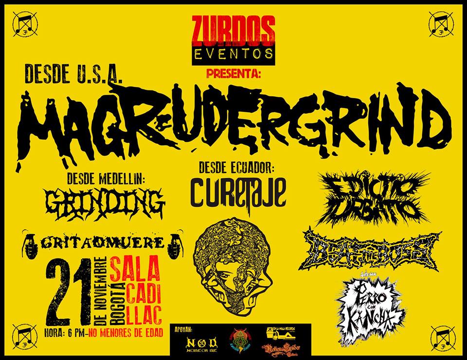 MAGRUDERGRIND Colombia 2014 El Reverendo 11 years ago El trio norteamericano de Grindcore/Punk, MAGRUDERGRIND confirma su primera visita por territorio latinoamericano incluyendo en su itinerario a Colombia. El grupo se estará presentando en Bogota el proximo 21 de noviembre en la Sala Cadillac.