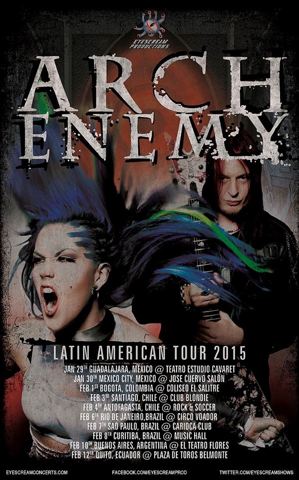 ARCH ENEMY confirma el itinerario de lo que sera su nueva gira por Latinoamérica para el 2015.