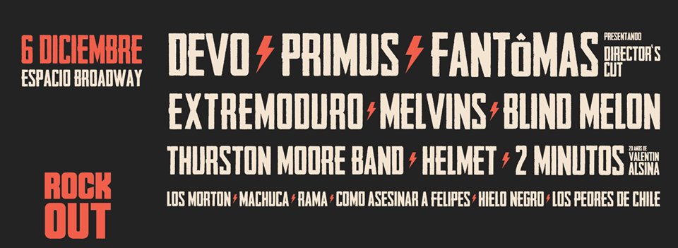 Continúan los grandes carteles en Sudamerica, esta vez se trata de ROCKOUT FEST el cual se llevara en Chile el proximo 6 de diciembre reuniendo a bandas como FANTOMAS, MELVINS, HELMET…