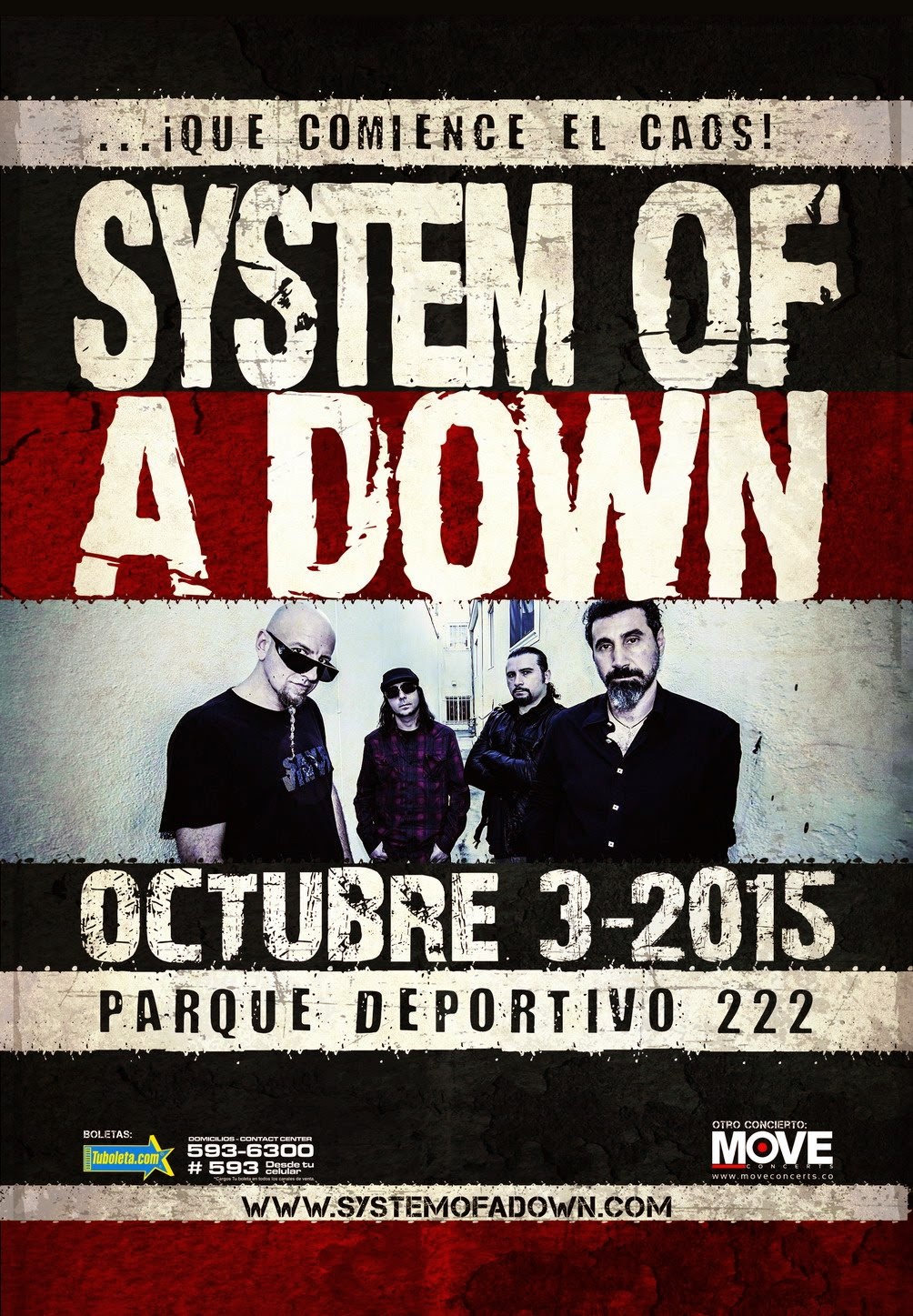 El cuarteto armeniano SYSTEM OF A DOWN confirma su primera visita por Colombia para el proximo 3 de Octubre.