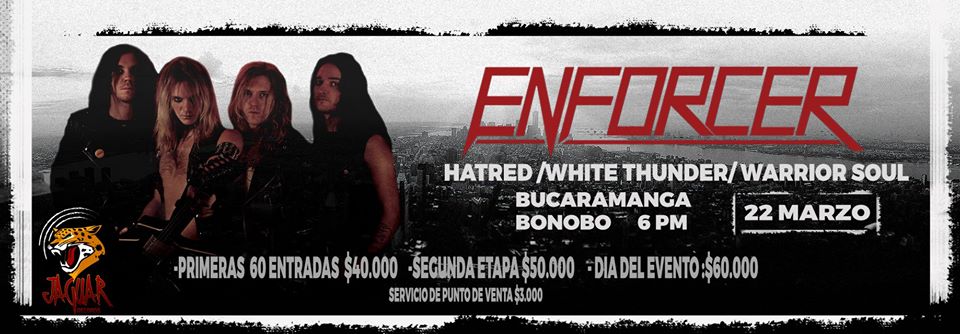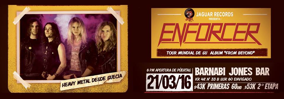 El cuarteto de Heavy Metal sueco ENFORCER confirma su visita por Latinoamérica para Febrero y Marzo del proximo año incluyendo a Colombia en su itinerario.