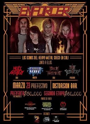 El próximo 23 de marzo (Miércoles prefestivo) #Cali se sacudirá a ritmo de los íconos del #HeavyMetal sueco Enforcer en el marco de su gira por Sur America, tendrá una parada obligada en nuestra Cali. Pilas pues que las boletas ya estan disponibles en Ardo Maniac Tattoo Studio, Tribal Tattoo y Distorsion Metalbar.
