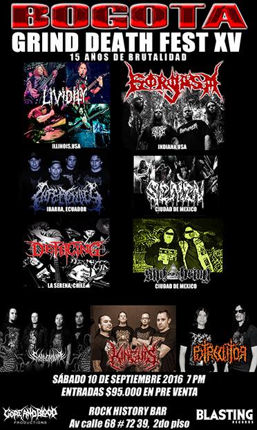 La organización del Bogotá Grind Death Fest confirma para su edición XV la llegada de LIVIDITY y GORGASM acompañados de INFECTOLOGY (Ecuador) y las bandas mexicanas SEMEN y SHIT BEING.