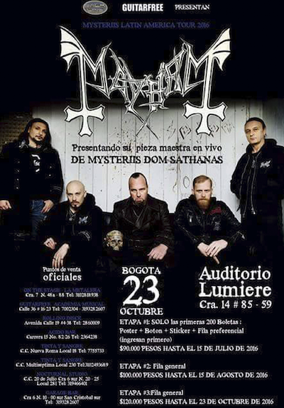 MAYHEM confirma su regreso por Latinoamérica para el mes de octubre bajo el marco de su gira “De Mysteriis Dom Sathanas” (en el cual tocaran en su totalidad el emblematico disco).