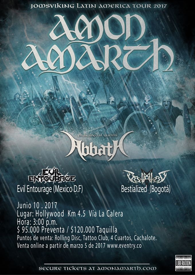 Transporte para el concierto de Amon Amarth + Abbath en Colombia 2017, Jun 10 en Hollywood Calera