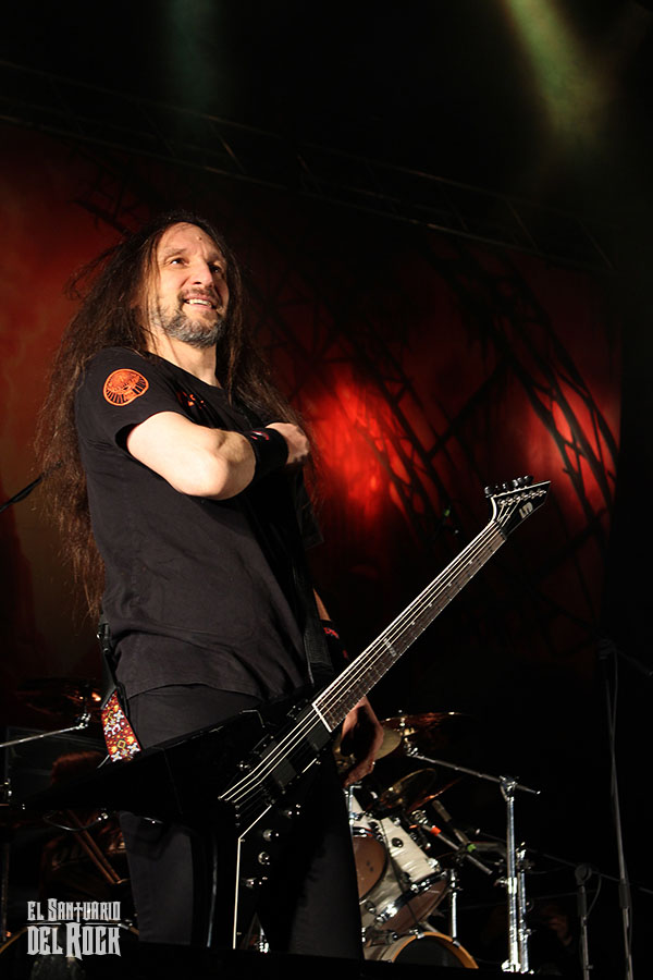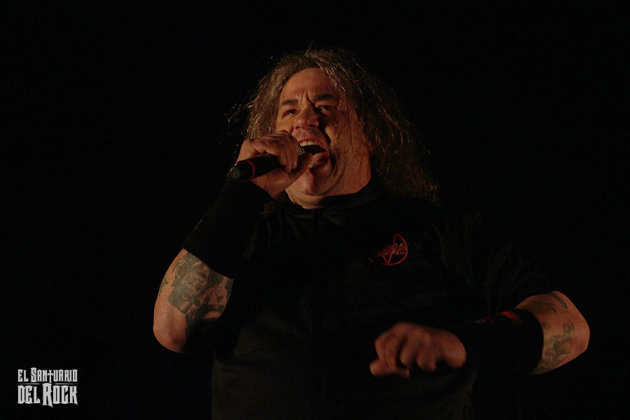 Tom Angelripper con SODOM cumplió su cuota aplastante de Thrash con un recorrido a través de toda su discografía, opacadas por un par de fallas de sonido en el bajo aunque la energía demoledora nunca se agotó tanto por parte de la banda como por parte del público.