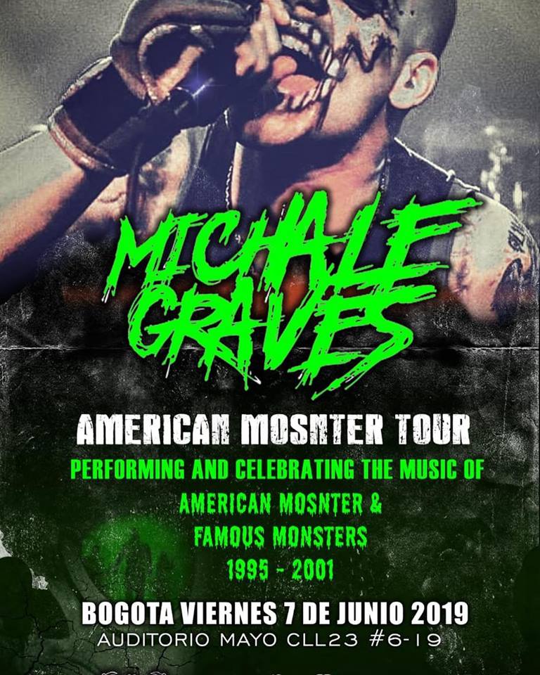 El cantante y compositor estadounidense se embarca en una gira por Latinoamérica para el mes de Junio que incluye una parada en Colombia. Michale Graves, Vocalista de un grupo que realmente no necesita presentación; MISFITS y el responsable de llevar a que la banda alcanzara el siguiente nivel con composiciones como “Dig Up Her Bone, Scream, Fiend Club, Shining” y muchas mas estará en el marco de su tour “American Monster – Misfits Era” en el cual actuara los mas aclamados albums en la historia de MISFITS; American Psycho y Famous Monster.