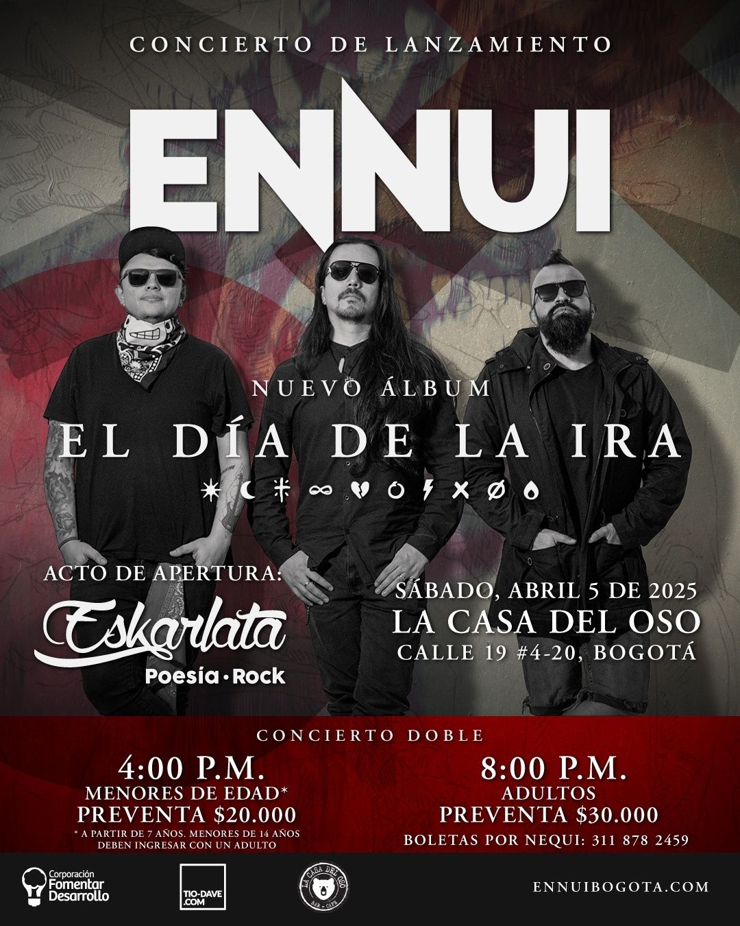 Bogotá vuelve a demostrar que su escena pesada está más viva que nunca. Ennui, el power trío que ha pulido su sonido entre el grunge de los 90, la agresividad del thrash y la intensidad del punk, está listo para lanzar El Día de la Ira, su álbum más visceral hasta la fecha.